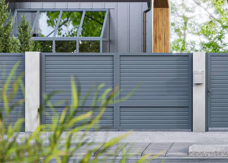 Распашные ворота и калитки серии Prestige могут открываться в двух направлениях: внутрь (встроенный и накладной монтаж) и наружу (встроенный монтаж).
